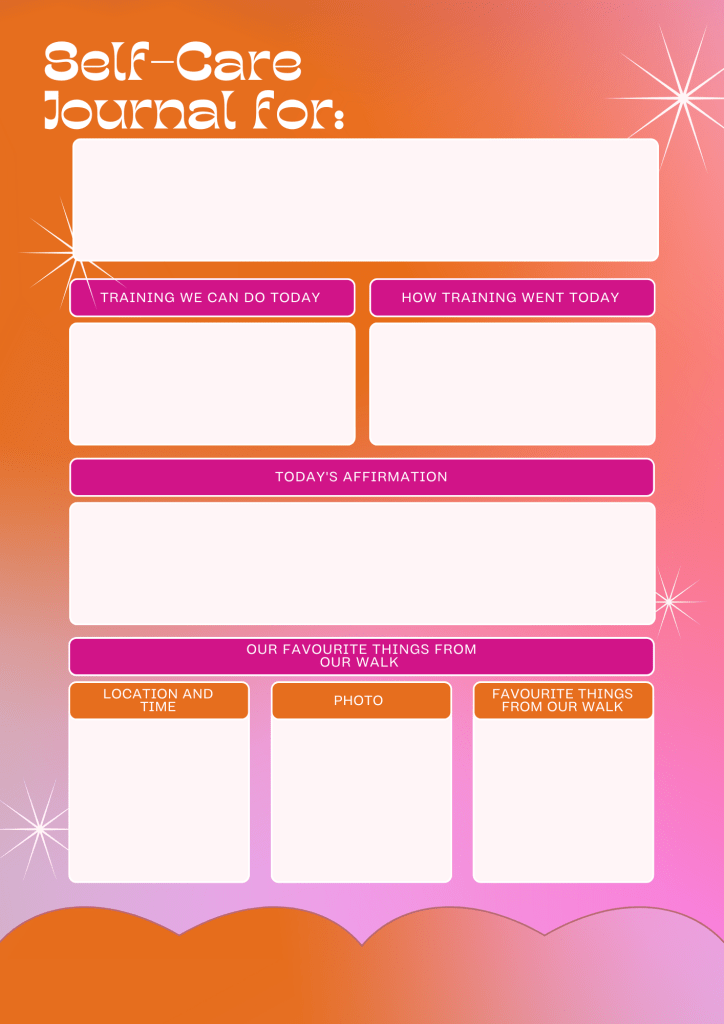 With this in mind the self care journal I mentioned to begin with I have created and included below for you to print. I really hope this helps you as a tool on your healing journey, learning to forgive yourself and focusing on a strong emotional connection with your dog.