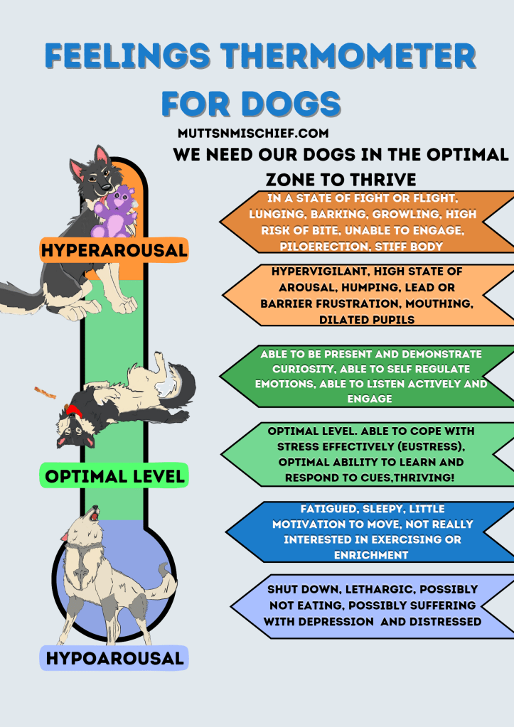 Of course because the window of tolerance is another tool that we can apply to further understand dog behaviour a model of a window of tolerance was researched with dogs to understand their ability to function and thrive and where this landed within the window and where dogs were placed for hypo and hyper arousal. Two very different states.