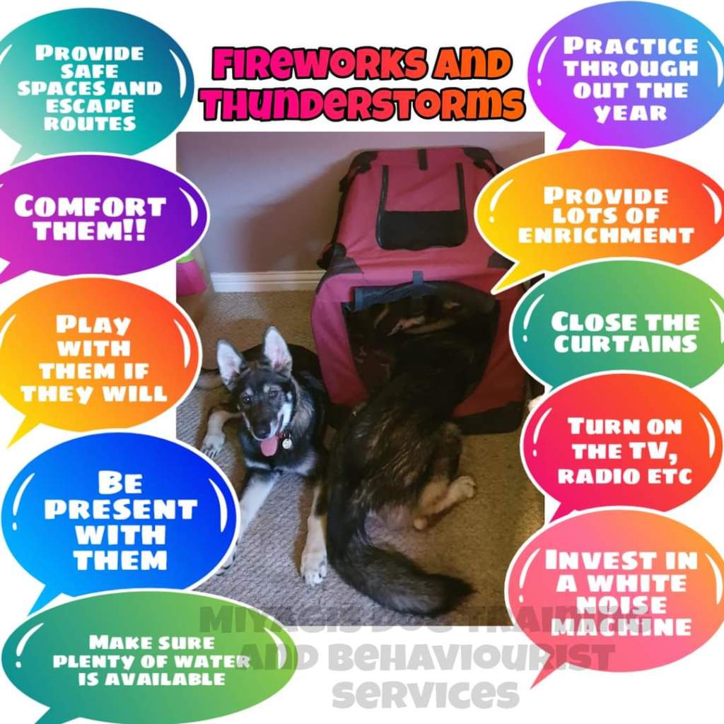 Working on desensitisation sessions throughout the year can be really helpful in ensuring your dog is comfortable with fireworks and thunderstorms or at least as comfortable as they can be.