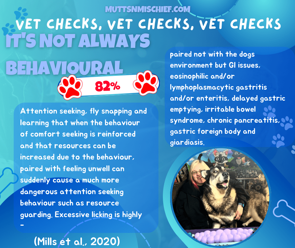 Bécuwe-Bonnet, V., Bélanger, M.-C., Frank, D., Parent, J. and Hélie, P. (2012). Gastrointestinal disorders in dogs with excessive licking of surfaces. Journal of Veterinary Behavior, 7(4), pp.194–204. doi:https://doi.org/10.1016/j.jveb.2011.07.003.